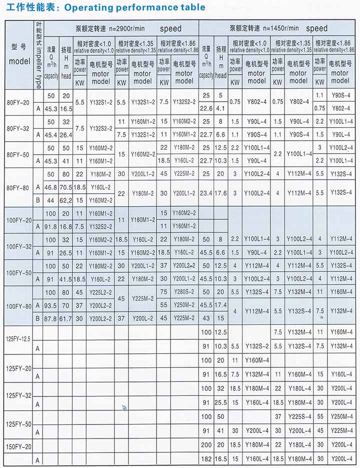概述: FY、FYS型耐腐蝕泵立式液下泵是-種單級(jí)單吸長(zhǎng)軸式液下離心泵,其標(biāo)記、額定性能點(diǎn)和法蘭連接尺寸等效采用ISO2858國(guó)際標(biāo)準(zhǔn),技術(shù)條件采用IS05199標(biāo)準(zhǔn)。與原FY型耐腐蝕液下泵相比,具有體積小、效率高、節(jié)能效果好,運(yùn)行可靠等優(yōu)點(diǎn)。適用于輸送不含固體顆粒、磨料的腐蝕性介質(zhì)。 泵的輸送溫度-般為0~105℃。溫度在-200~0℃、105~18℃0時(shí)可采用保溫夾套及冷卻夾套,采用低溫或高溫耐磨導(dǎo)軸承,此類情況用戶應(yīng)說(shuō)明。 如輸送介質(zhì)有少量固體顆?;螂s質(zhì)可選用本公司的TCN型懸臂式液下泵,性能穩(wěn)定可靠。 泵的工作壓力按1.6MPa設(shè)計(jì)。 泵的性能范圍:流量為1.6-2600m3/h、揚(yáng)程為5-132m。 根據(jù)所輸送介質(zhì)的不同,F(xiàn)Y型立式液下泵接觸液體部分的材質(zhì)可選用鑄鐵(用符號(hào)H表示)、鑄鋼、1Cr18Ni9Ti(用符號(hào)B表示)、1Cr18Ni12M02Ti(用符號(hào)M表示)、304、304L、316、316L、904、Lewmet合金、20號(hào)合金等材料制造。 FYS型耐腐蝕液下泵適用化工、醫(yī)學(xué)、造幣、染化、冶金、環(huán)保、農(nóng)藥等行業(yè)輸送幾乎所有的化學(xué)介質(zhì)。(除少數(shù)介質(zhì)如溶融金屬鋰、鈉、鉀、三氟化氯等)。